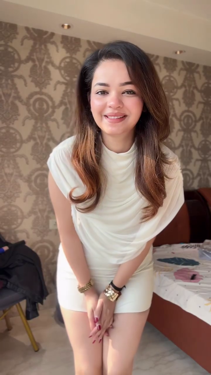 The crisp white color adds a touch of sophistication and modern charm. Its minimal design makes it a versatile wardrobe essential that can be styled in multiple ways. The mini length adds a trendy edge, while the clean neckline keeps the overall look classy and balanced.