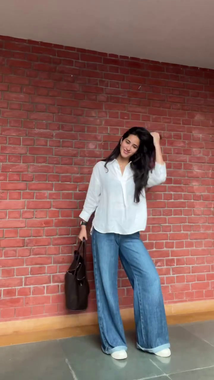 The combination of a crisp white shirt and relaxed denim creates a balanced look that feels both comfortable and stylish. This outfit works perfectly for casual outings, coffee dates, travel days, shopping trips, or relaxed office environments.