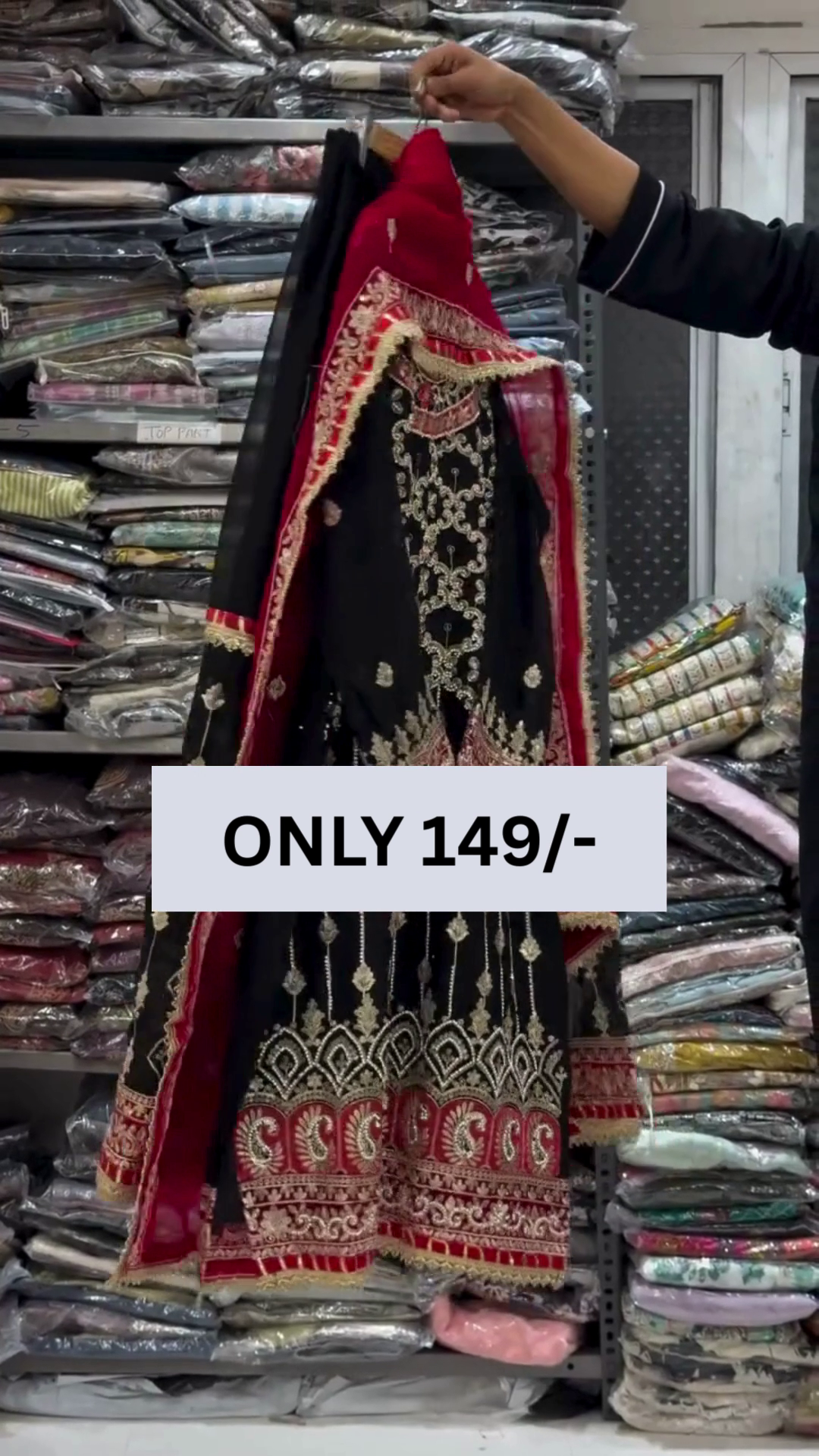 Make a bold and graceful style statement with this stunning black and red embroidered suit set. The rich black base beautifully highlights the intricate golden embroidery, creating a luxurious and eye-catching look that is perfect for festive occasions and special gatherings.
