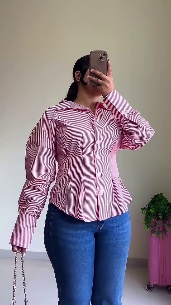 Add a touch of elegance and modern sophistication to your everyday wardrobe with this stylish pink striped peplum shirt. Designed to offer a flattering silhouette while maintaining a chic and polished appearance, this top is perfect for women who love combining comfort with contemporary fashion.