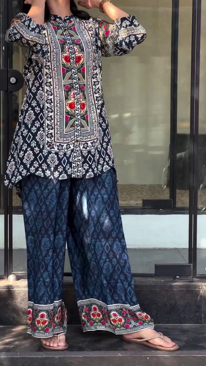 Be the first to review “Elegant Teal Floral Korean Co-Ord Set with Comfortable Bottom Wear”