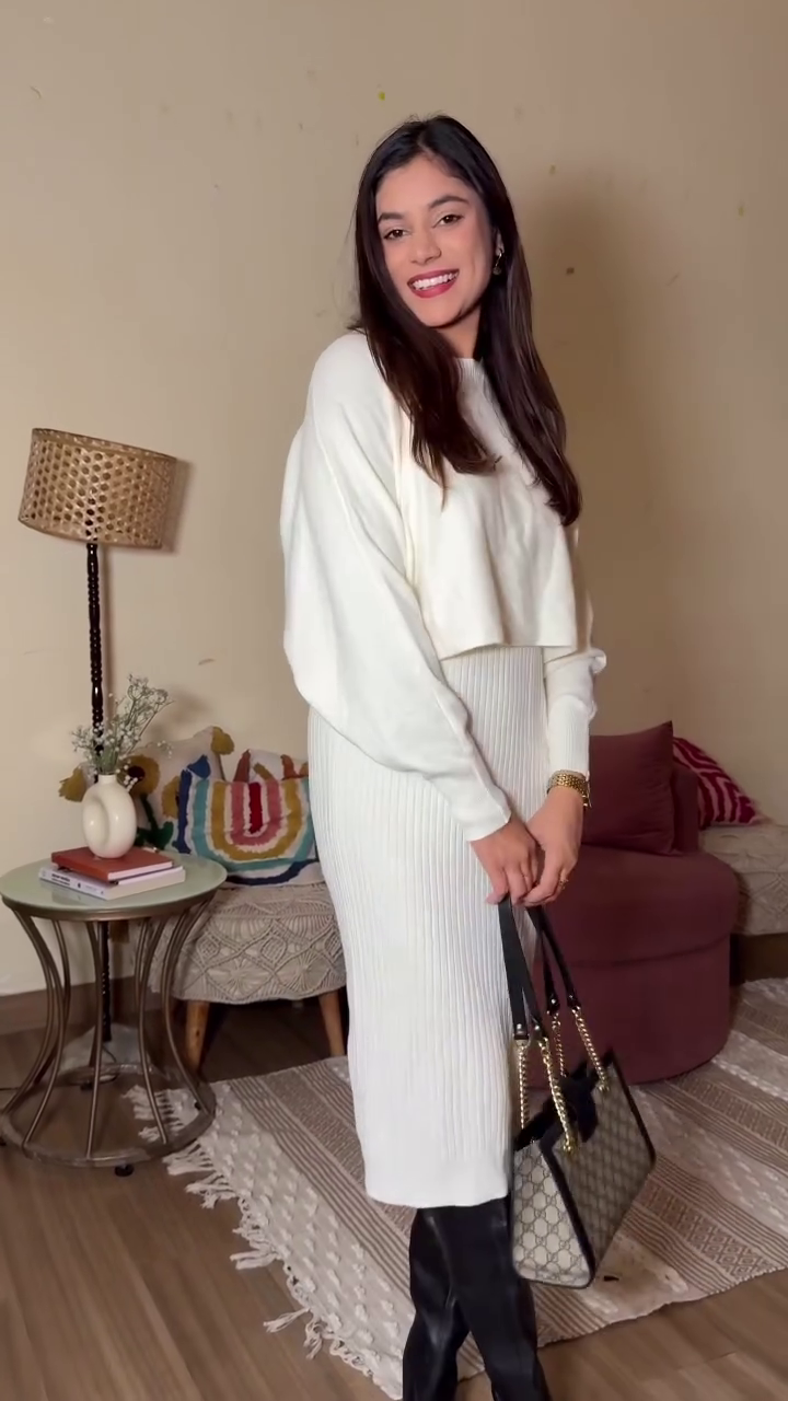 The color story moves gracefully from neutral elegance to bold winter hues — ivory, camel, maroon, navy, and charcoal — creating timeless tones that complement every skin tone and occasion. Whether you’re styling for a work meeting, a cozy brunch, or a weekend getaway, this collection brings effortless transitions and refined elegance.