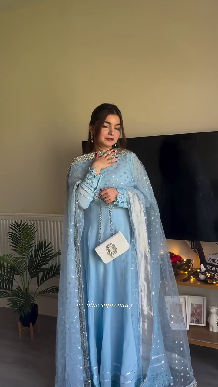 Ideal for receptions, festive dinners, or cocktail functions, this attire will make you look like a vision in blue 💙. Pair it with diamond jewelry, a chic clutch, and silver heels for a dazzling statement.