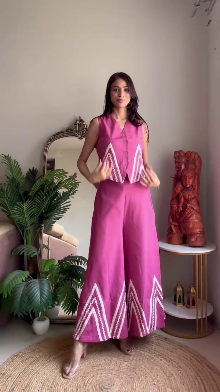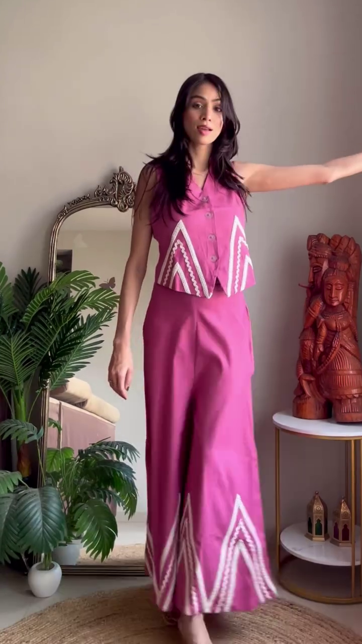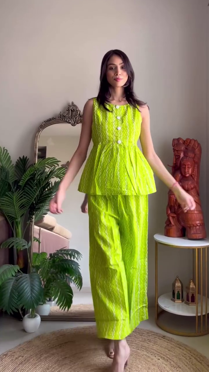 Perfect for casual outings, brunch dates, vacation wear, or relaxed festive gatherings, this co-ord set can be styled with minimal jewelry and flats for a daytime look, or dressed up with statement earrings and heels for an evening vibe.