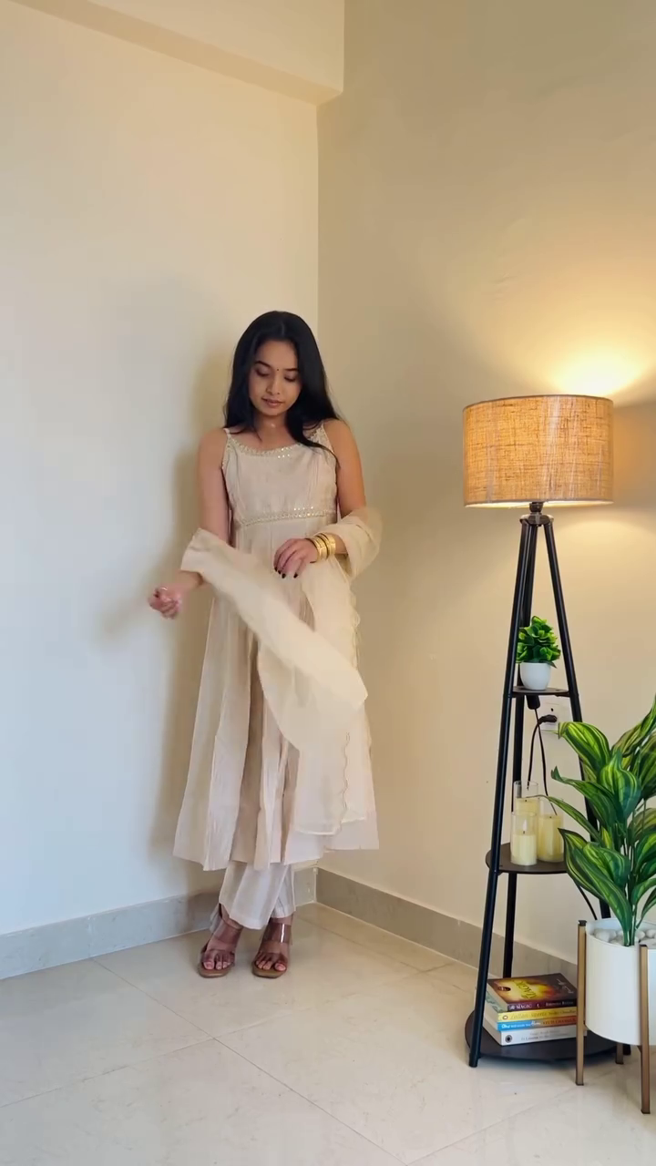 The flared cut creates a beautifully fluid drape, enhancing the feminine silhouette while ensuring comfort throughout the day. Paired with matching straight pants, the set maintains a balanced structure that feels both modern and timeless. The lightweight dupatta completes the look, adding softness and dimension with its airy fall.