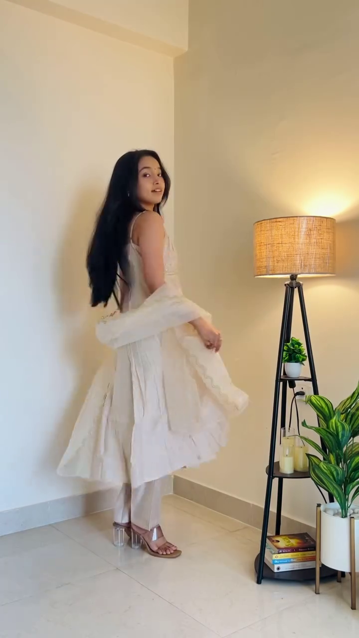 Rendered in a serene ivory tone, this outfit is perfect for intimate celebrations, festive gatherings, or elegant daytime events. Its neutral palette allows for versatile styling—pair it with statement gold bangles and heels for a festive look, or keep it delicate with minimal accessories for a refined aesthetic.
