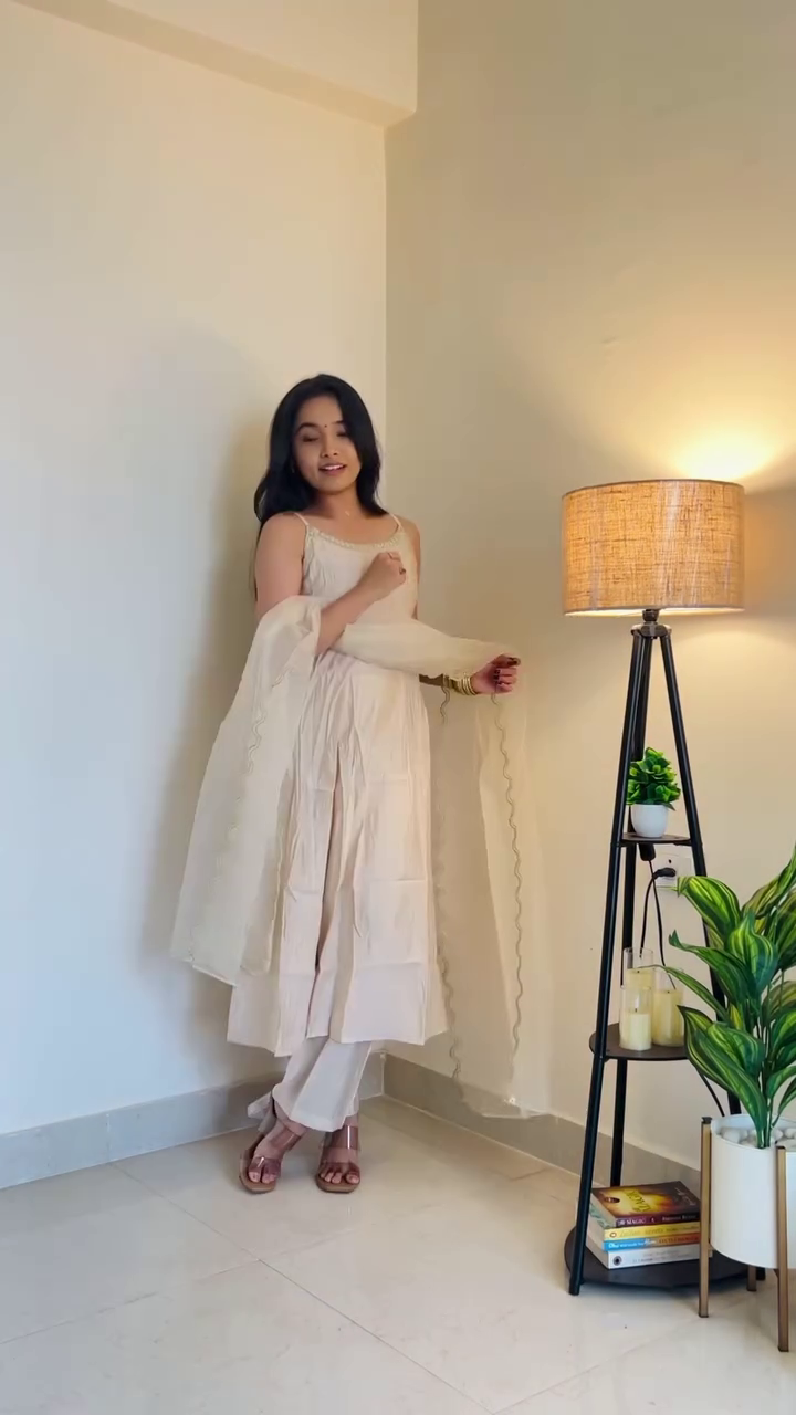 Step into understated sophistication with this Ivory Grace Anarkali Set, designed for effortless elegance and refined charm. Crafted in a soft, flowing silhouette, this ensemble embodies grace with every movement. The sleeveless Anarkali kurta features delicate detailing along the neckline, adding just the right touch of subtle shimmer without overpowering its minimalist appeal.