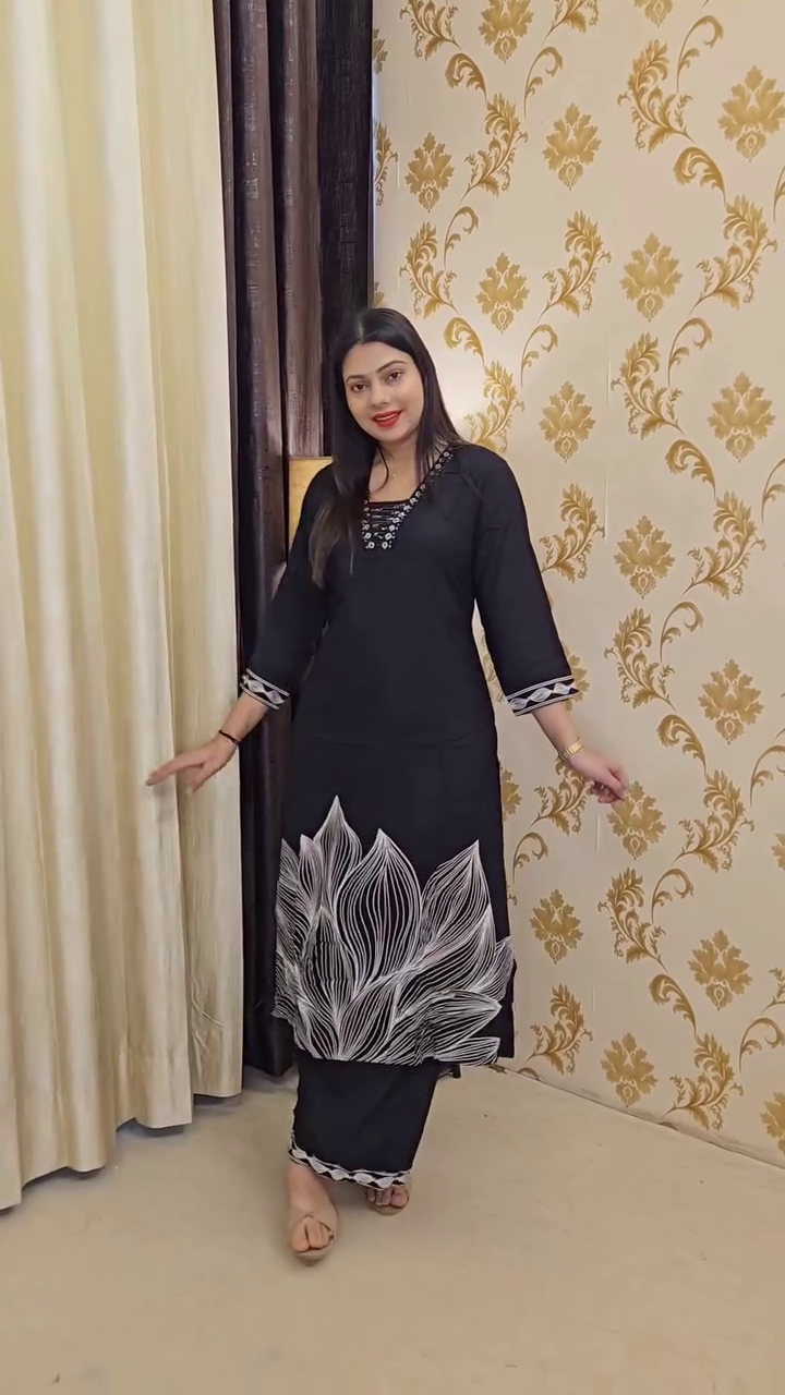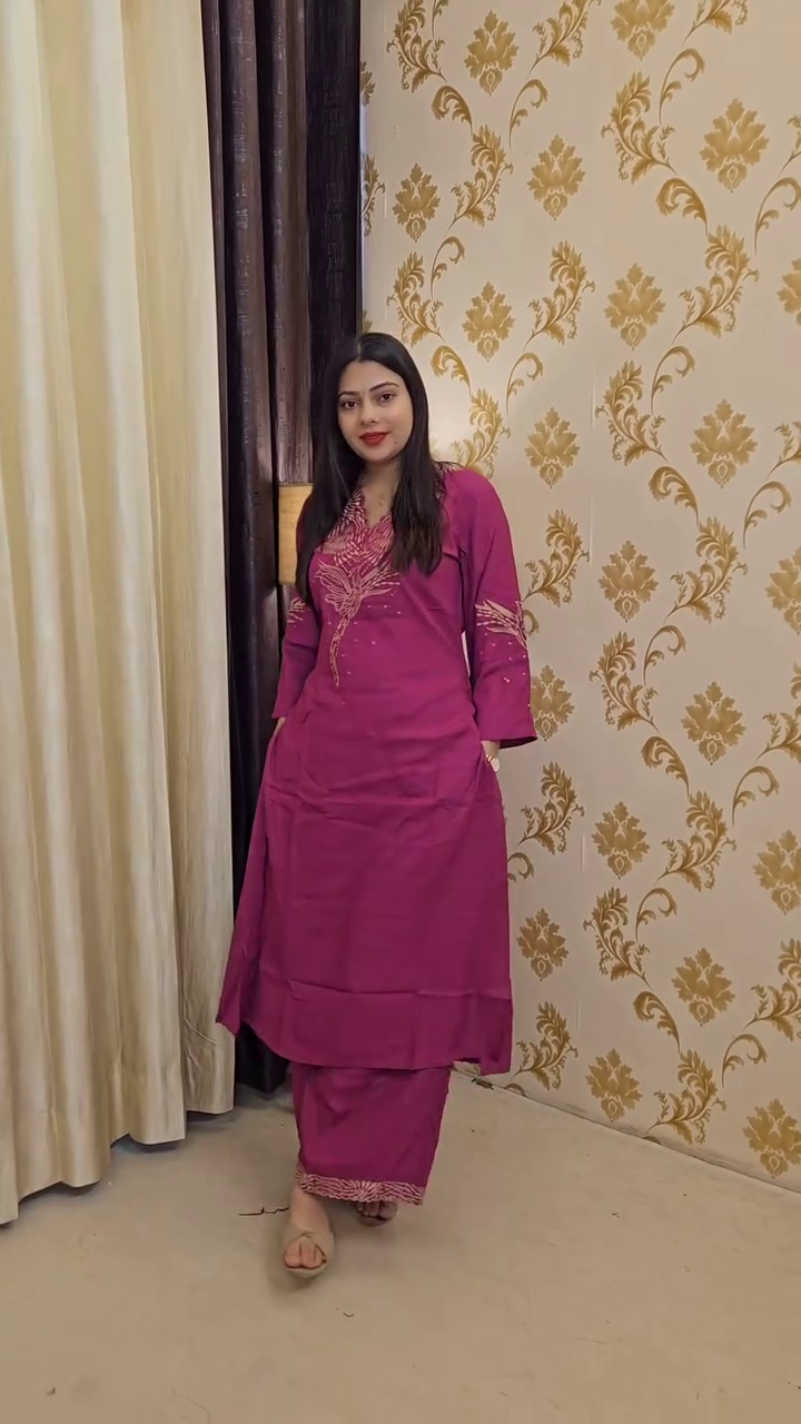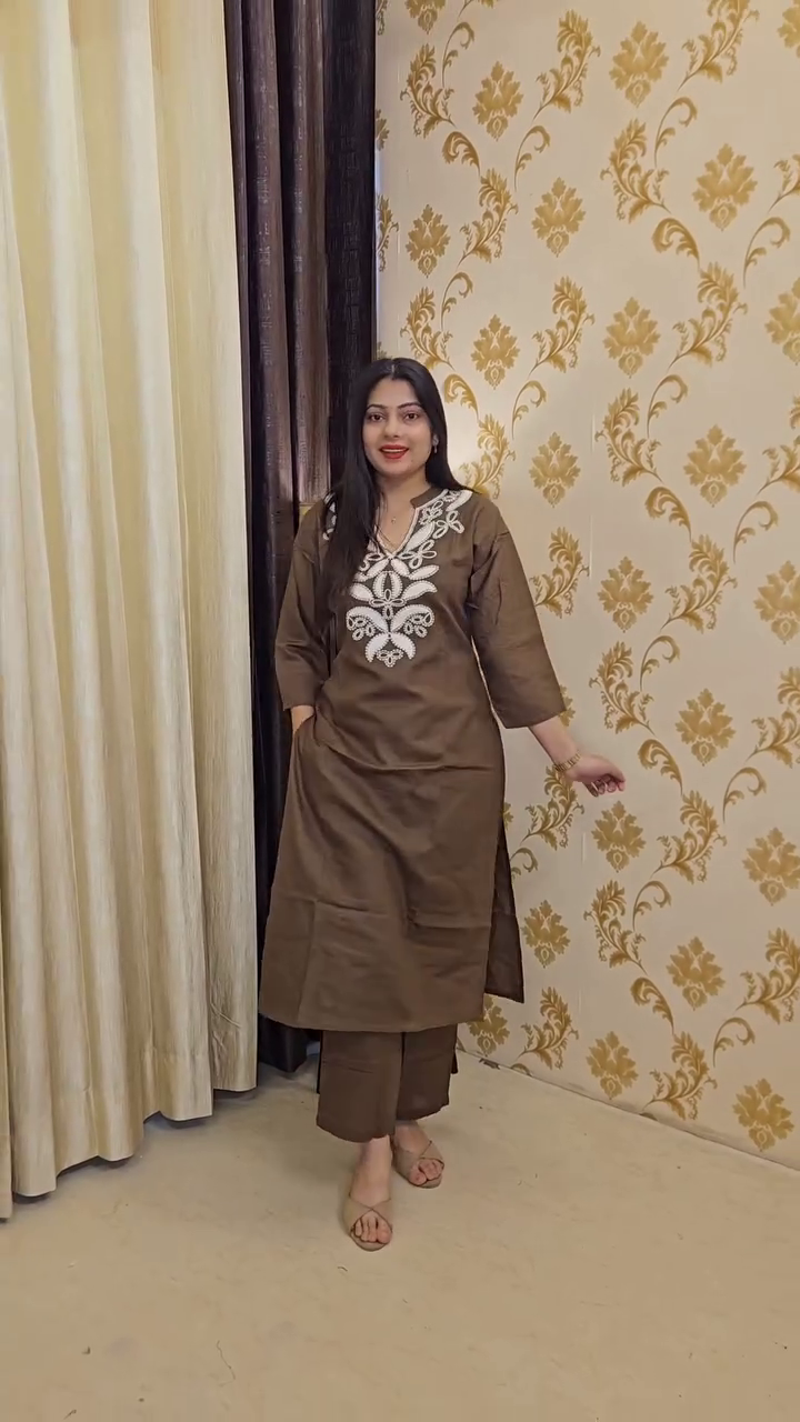 Paired with matching straight-fit pants, this set offers a coordinated and polished look suitable for casual outings, brunches, travel days, or relaxed festive gatherings. The neutral base makes it easy to accessorize—style it with statement earrings for a chic touch or keep it minimal with nude heels for a refined finish.