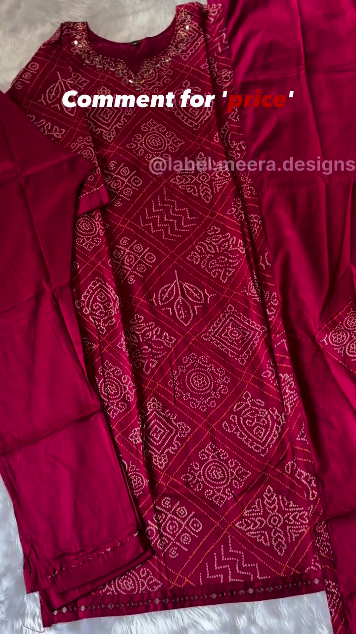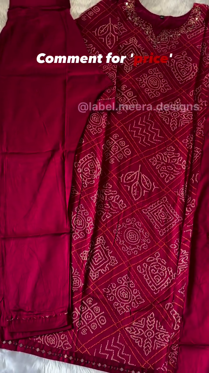 Make a bold yet elegant statement with this stunning Ruby Red Bandhani-Inspired Kurta Set. Designed in a rich, festive red hue, this ensemble beautifully blends traditional artistry with modern simplicity.