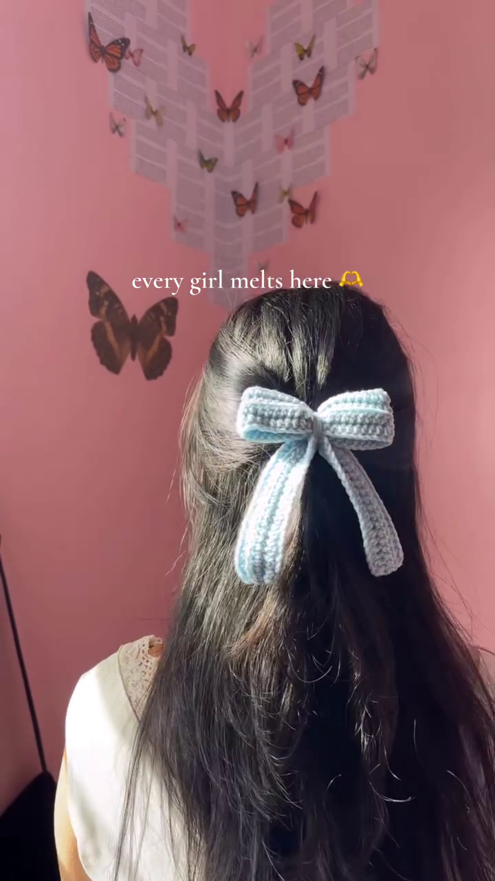 The structured loops and elongated tails create a graceful silhouette, while the soft fabric keeps the vibe feminine and playful. Whether you’re styling it for a brunch date, a casual day out, or just to romanticize your everyday routine, this bow brings effortless “soft girl” energy.